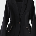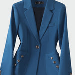 Impresivan sako s ženstvenim krojem koji se ističe elegantnim detaljima. Jedan gumb sprijeda daje minimalističku eleganciju, dok dekorativni gumbi na džepovima pružaju modernu notu. Idealno za poslovne sastanke, ali i za večernje izlaske sa stilom.