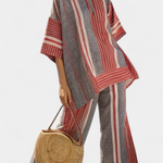 Oversize Daisy kombinezon od lanenog materijala s prugama u crvenoj koraljnoj i sivoj boji, modernog i udobnog stila