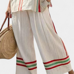 Sredozemni set Daisy od bambusovog lana s elegantnim crvenim i zelenim prugama