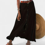 Zračna i elegantna, ova suknja isijava suptilnu ženstvenost i nudi fleksibilnost za svaku priliku. S lagano prozirnom tkaninom i gumbima sprijeda, nosi se od jutra do večeri uz odgovarajuće stiliziranje.