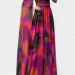 Romantična i sofisticirana, haljina Nives unosi skulpturalni i ženstveni duh zahvaljujući izrezu s jednim ramenom i drapiranoj rukavi. Delikatni cvjetni aplikacija podiže dizajn, dok se maxi silueta fluidno kreće s gracioznošću, stvarajući nezaboravnu prisutnost na bilo kojem događaju. Izrađena od mekog i elegantnog materijala, balansira udobnost s rafiniranim glamuroznošću.